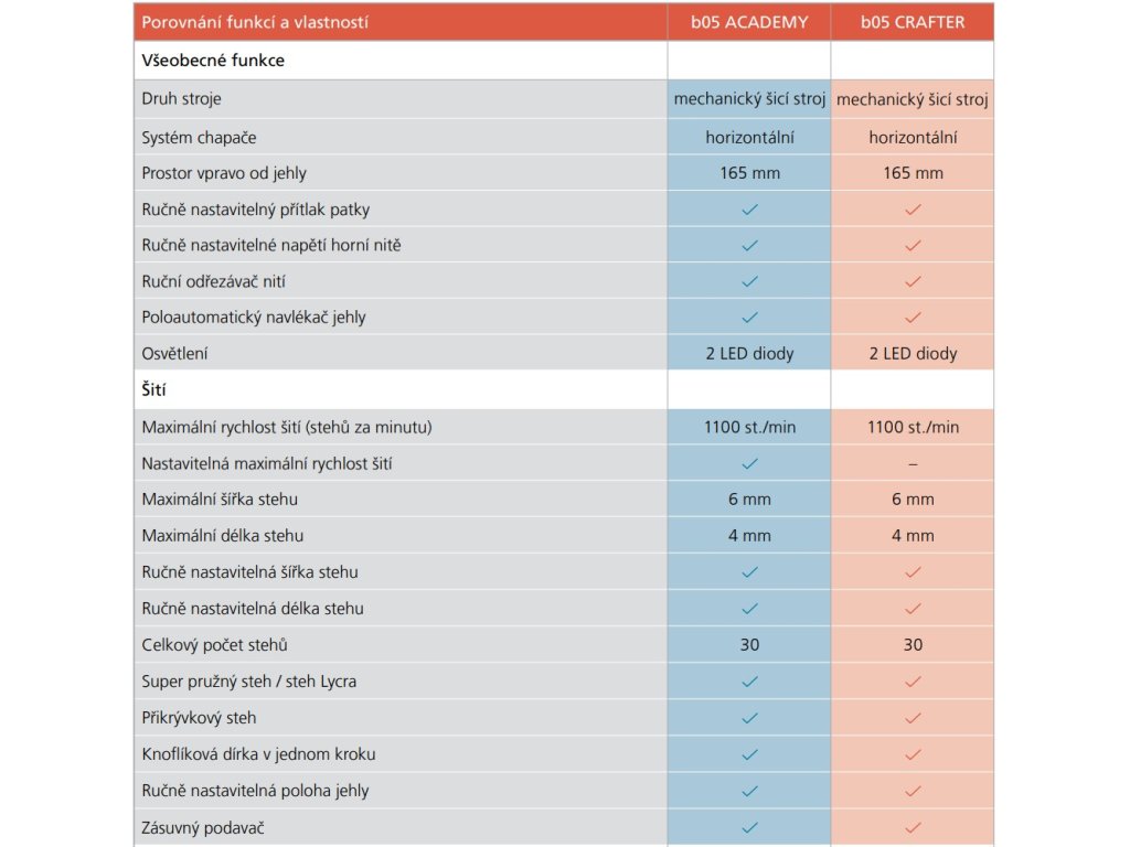 Vlastnosti šijacieho stroja Bernette 05 Academy: