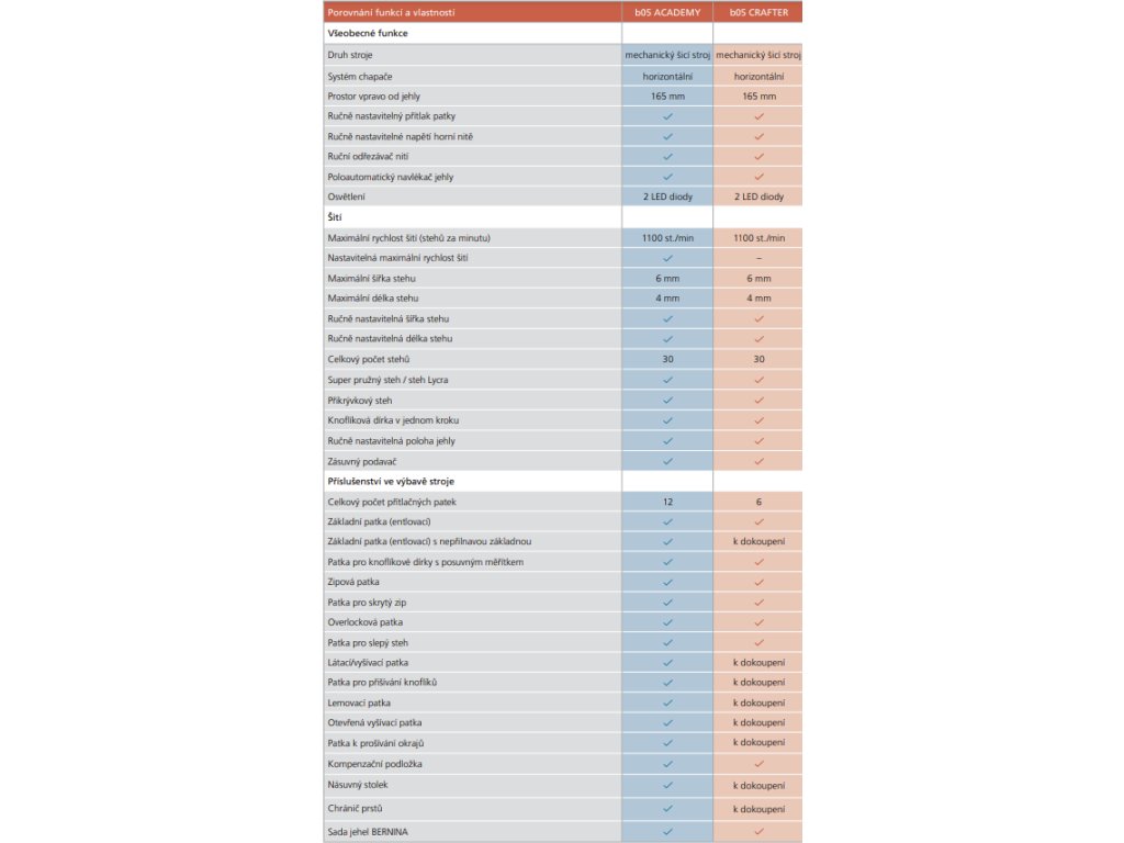 Vlastnosti šijacieho stroja Bernette 05 Crafter: