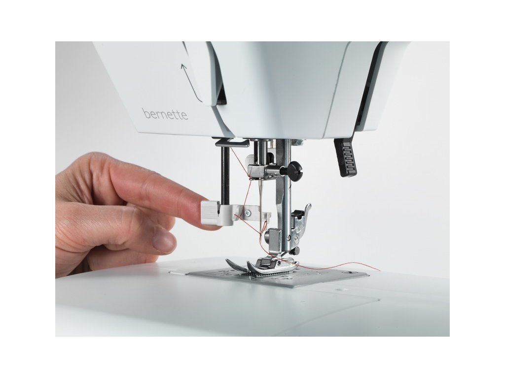 Poloautomatický navliekač ihly. Komplikované navliekanie ihly je minulosťou. Bernette 33 je pripravený na prácu za pár sekúnd.