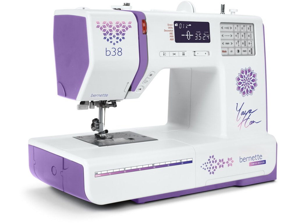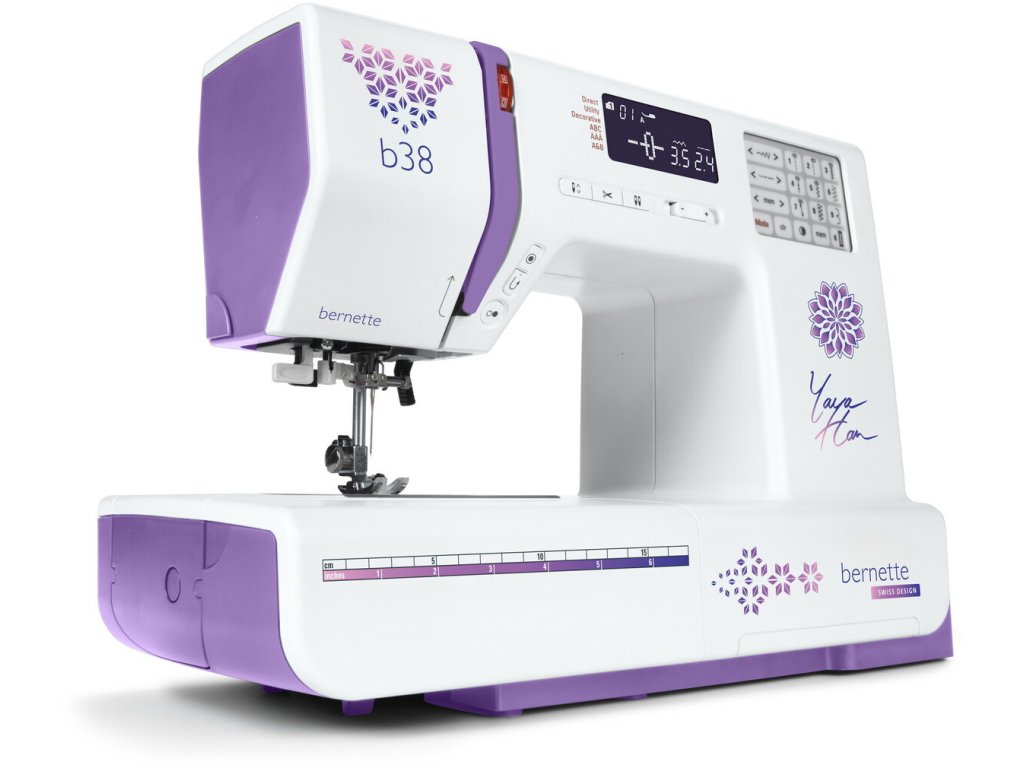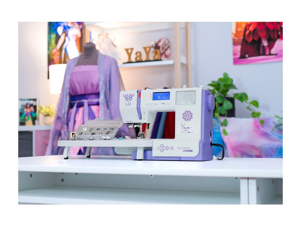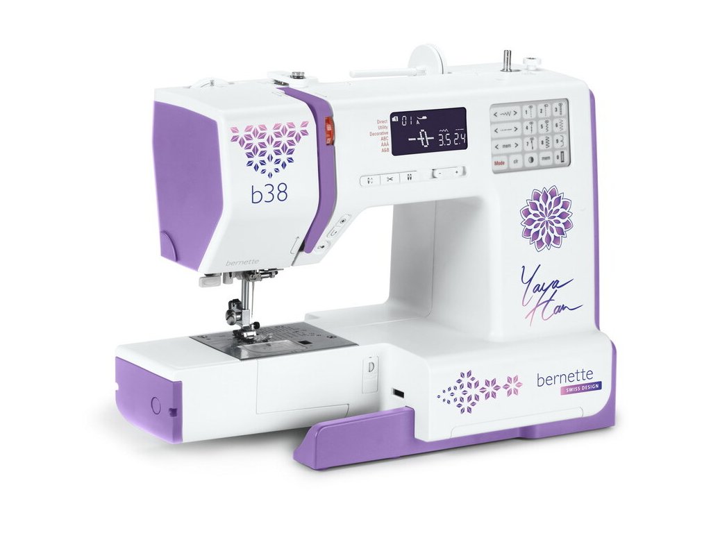 Bernette 38 je najvyšším modelom "tridsiatkovej" rady. Špeciálna edícia tohto obľúbeného modelu Bernette 38 Yaya Han disponuje okrem krásneho dizajnu aj 394 programami, vrátane 8 gombíkových dierok a troch druhov abecied. Od bežného modelu 38 ho odlišuje aj bohatá nadštandardná výbava v podobe 2 nožníc a páradla rovnakého dizajnu a 5 šijacích pätiek navyše, vrátane kráčajúcej pätky.