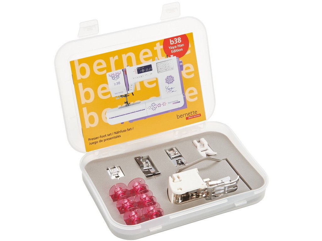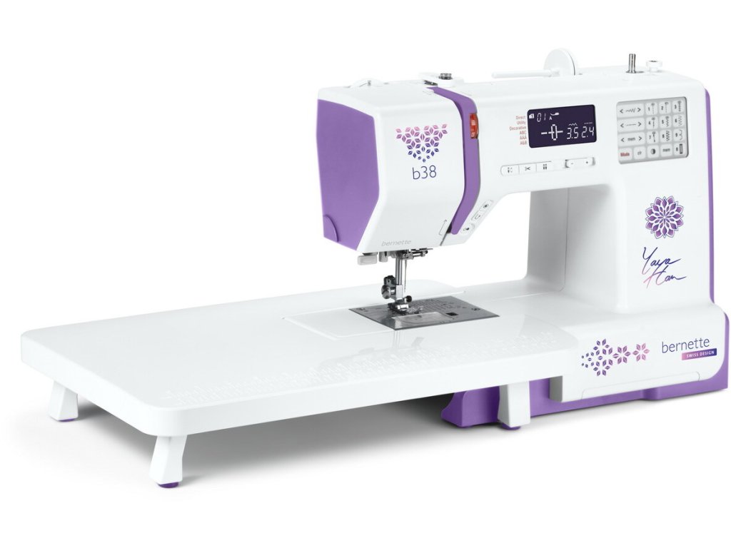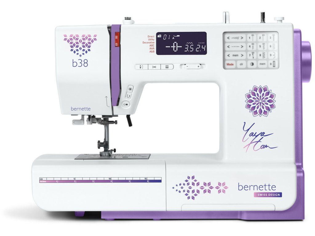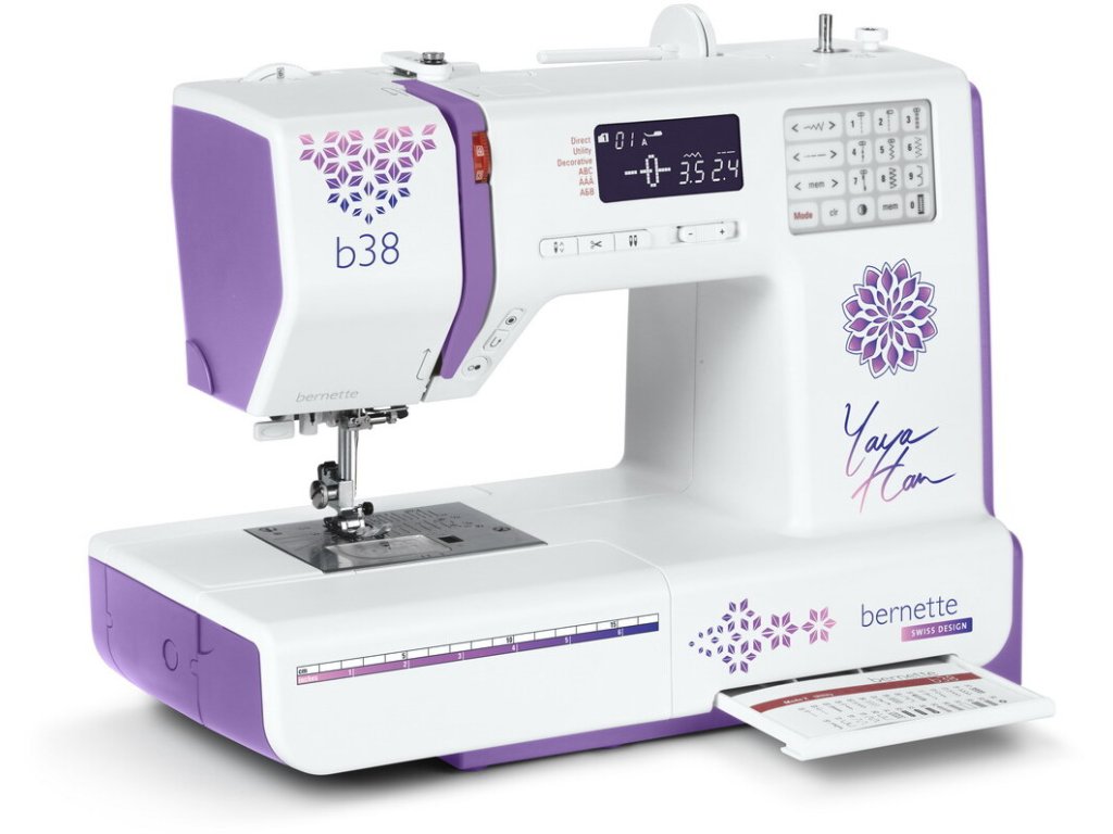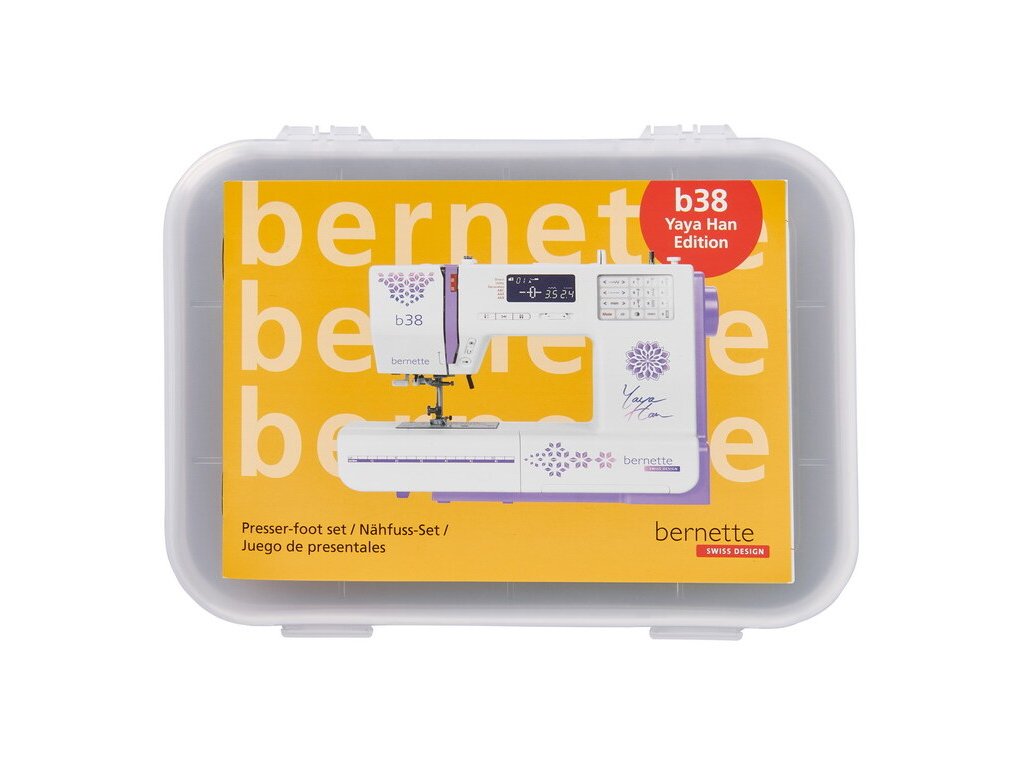 Bernette 38 je najvyšším modelom "tridsiatkovej" rady. Špeciálna edícia tohto obľúbeného modelu Bernette 38 Yaya Han disponuje okrem krásneho dizajnu aj 394 programami, vrátane 8 gombíkových dierok a troch druhov abecied. Od bežného modelu 38 ho odlišuje aj bohatá nadštandardná výbava v podobe 2 nožníc a páradla rovnakého dizajnu a 5 šijacích pätiek navyše, vrátane kráčajúcej pätky.