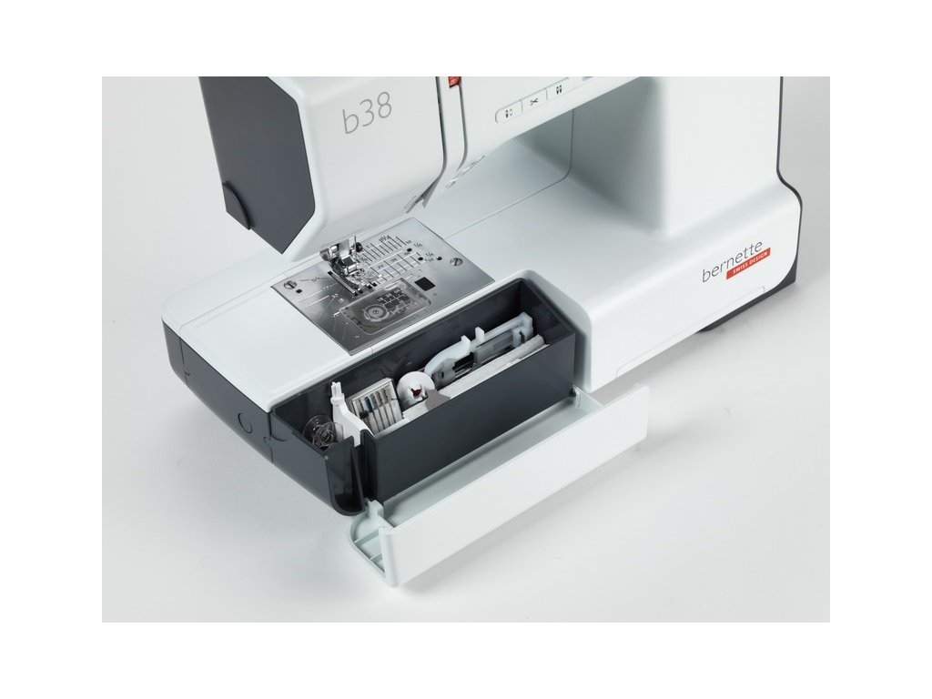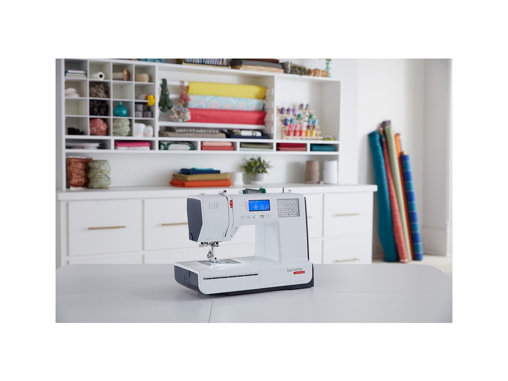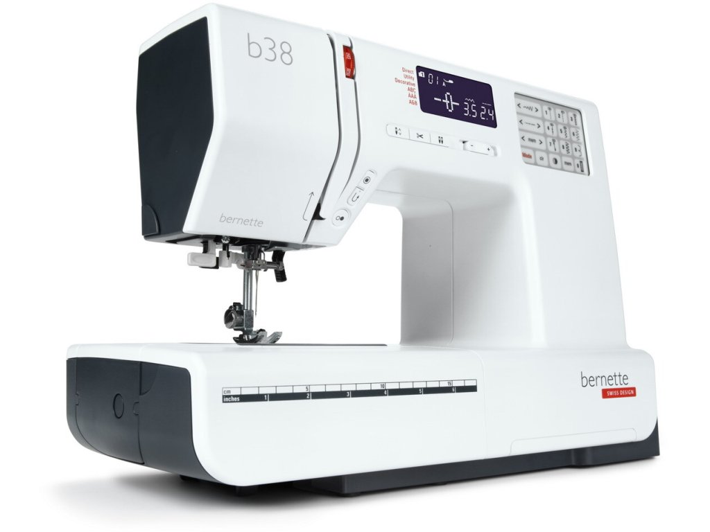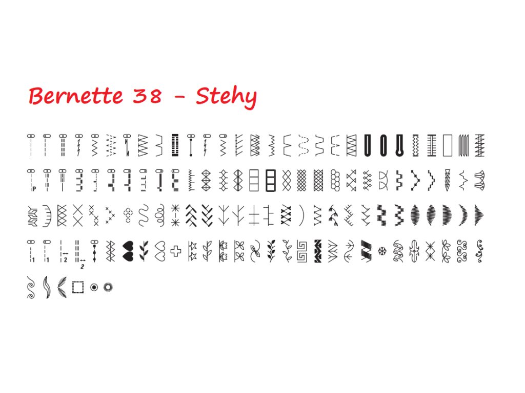 Ponúka 394 rôznych stehov, vrátane stehu na šitie pružných látok, takže môžete vyrobiť fantastické tričká a mikiny z úpletových látok. Bernette 38 má osem rôznych gombíkových dierok šitých v jedinom kroku a tri abecedy. Do pamäti stroja si môžete ukladať rôzne kombinácie stehových vzorov a použiť ich opakovane kedykoľvek neskôr. Ako najvyšší model rady je tento úchvatný šijací stroj vybavený žiarivým LED osvetlením, navliekačom a automatickým aj manuálnym odstrihom nití.