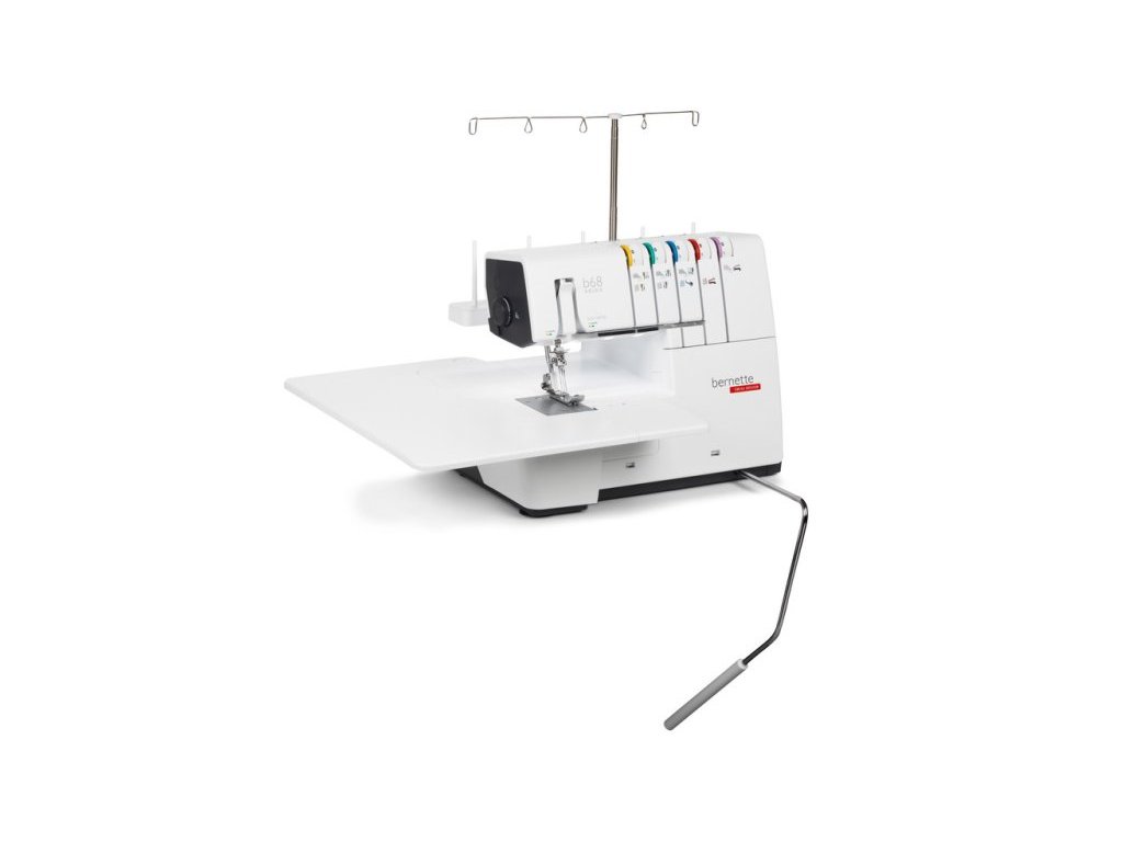 Veľká pracovná plocha. Veľa priestoru vpravo od ihly (130 mm) dáva tomuto overlocku ďalší rozmer. Veľká pracovná plocha je ideálna na vedenie a držanie ťažkých šijacích projektov za ihlou a poskytuje priestor pre všetky úkony v oblasti ihly a chapača: výmena prítlačnej pätky, pripojenie konvertora horného chapača a oveľa viac.