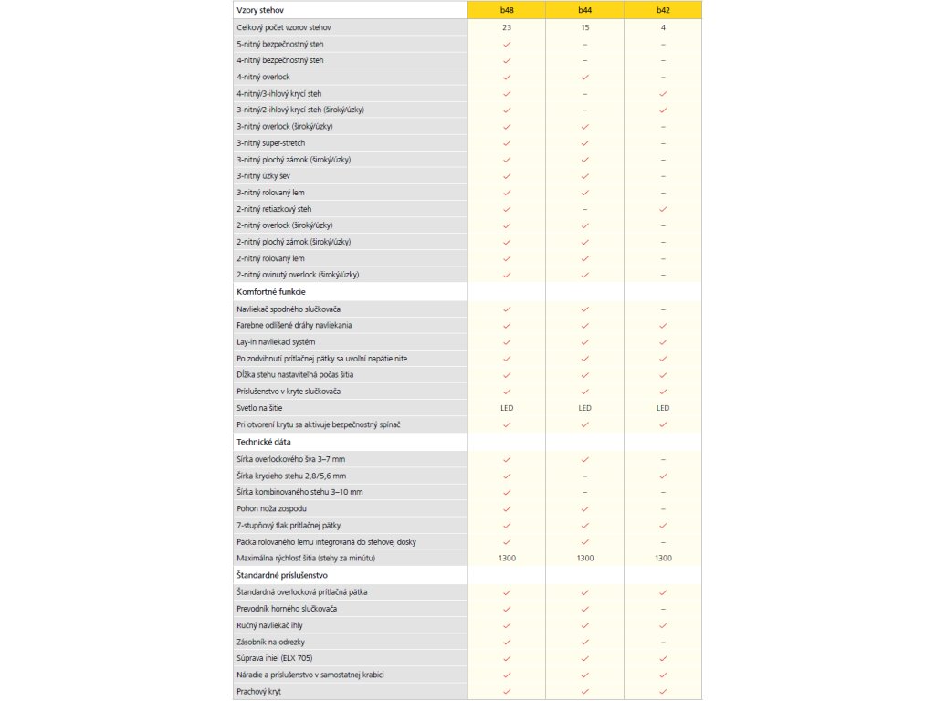 - Rýchlosť šitia: 1300 stehov za minútu