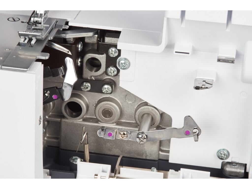- Jednoduché navliekanie vďaka farebne označeným niťovým dráham