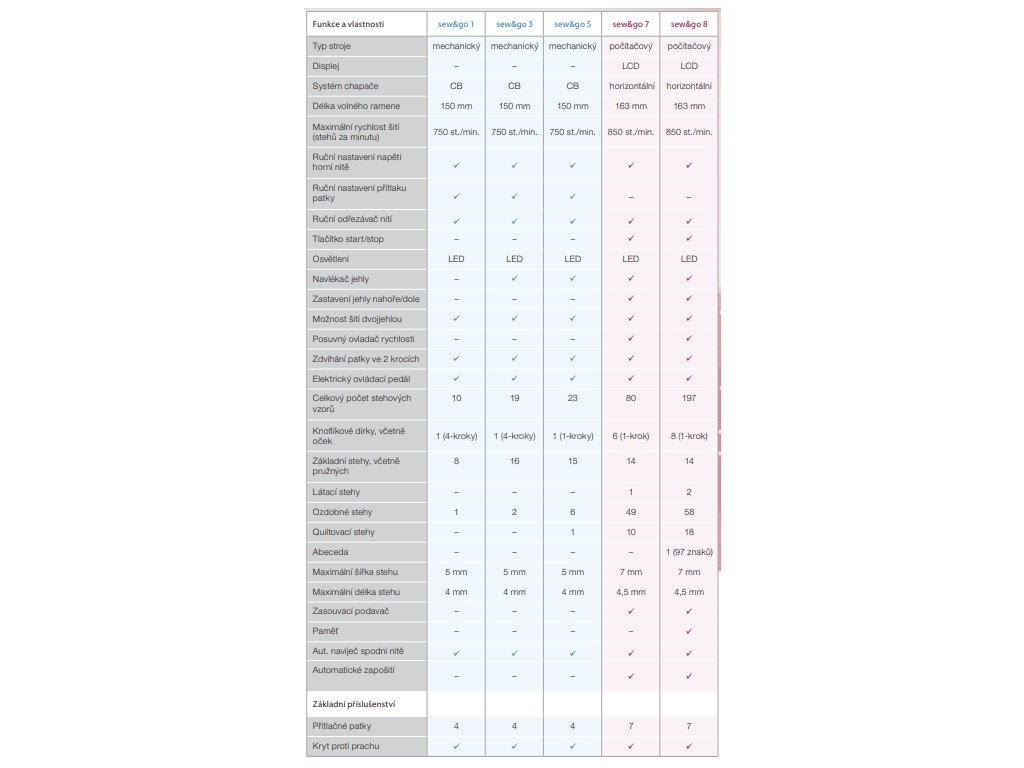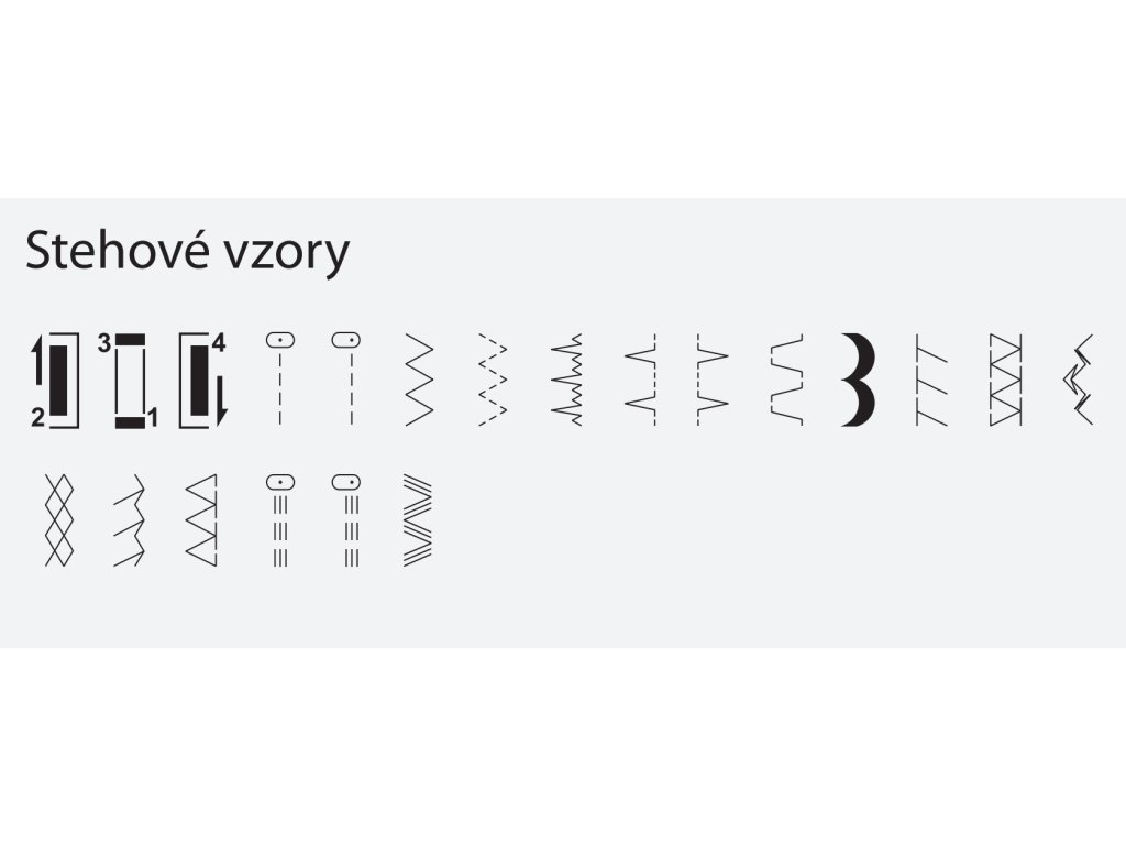 - Počet stehov: 19 stehov: základné, elastické (strečové), overlockové