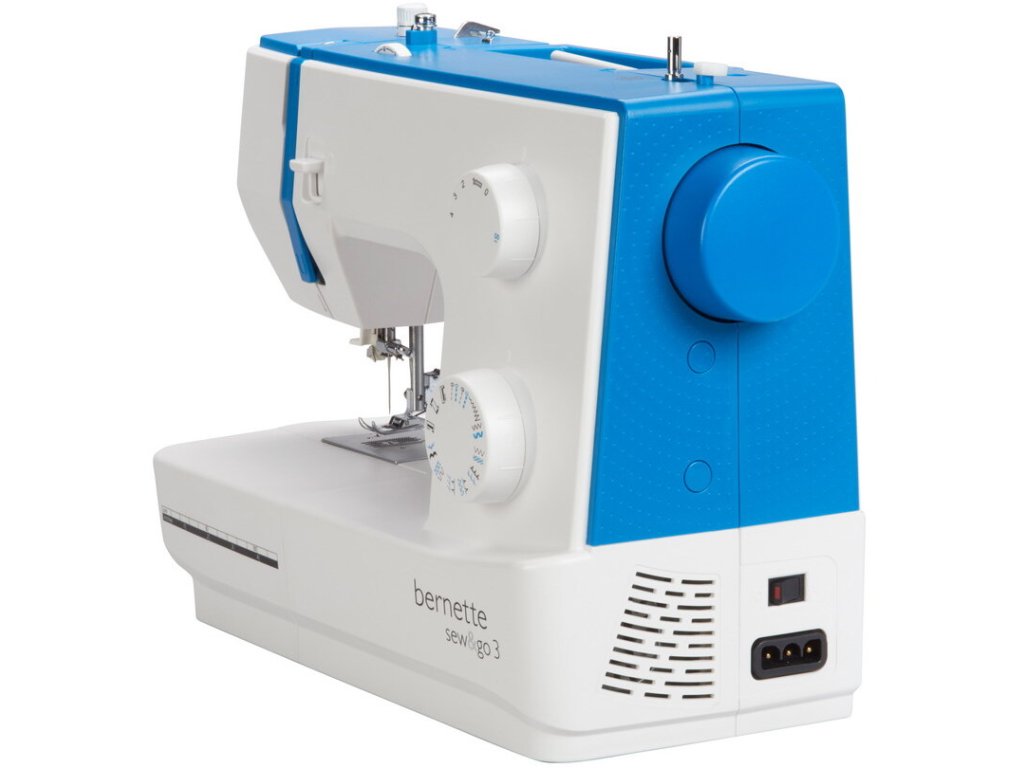Šijací stroj Bernette Sew&go 3 má v ponuke 19 stehov maximálnej šírky 5 mm, vrátane gombíkovej dierky. Pomocou dvoch otočných ovládačov na prednom paneli môžete voliť stehy a nastavovať ich dĺžku a ďalším nastavovačom volíte napätie hornej nite. K jednoduchej a rýchlej obsluhe prispieva manuálny navliekač ihly a odrezávač nití. V základnej výbave stroja bernette sew&go 3 nájdete štyri prítlačné pätky.