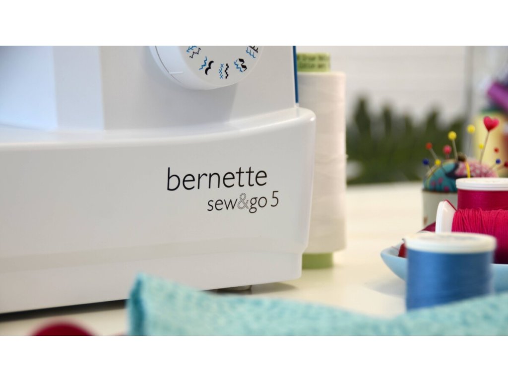 Šijací stroj Bernette sew&go 5 je najvyšší mechanický model Sew&Go bez elektroniky. V ponuke má 23 stehov maximálnej šírky 5 mm, vrátane gombíkovej dierky. Dvoma otočnými ovládačmi na prednom paneli môžete voliť stehy a nastavovať ich dĺžku a otočným voličom napätie hornej nite. K efektívnemu šitiu prispieva aj poloautomatický navliekač ihly.