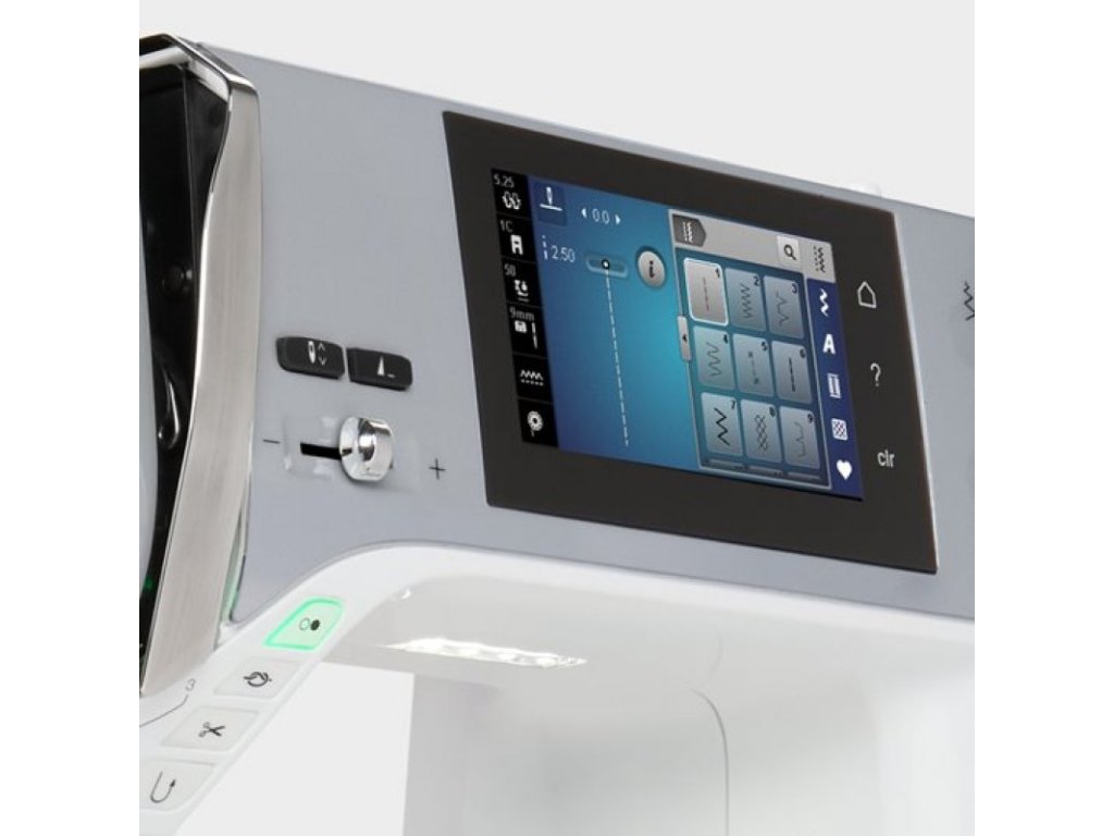 Moderná farebná dotyková obrazovka. Šijací poradca Vám pomôže so správnym nastavením. Pomocou multifunkčného ovládača prevediete doporučené nastavenie veľmi rýchlo.