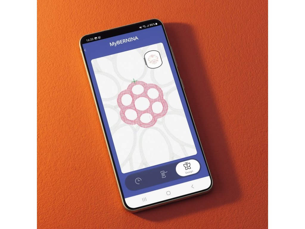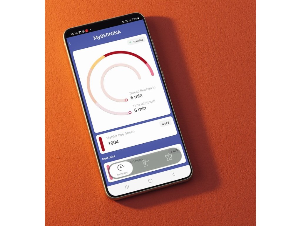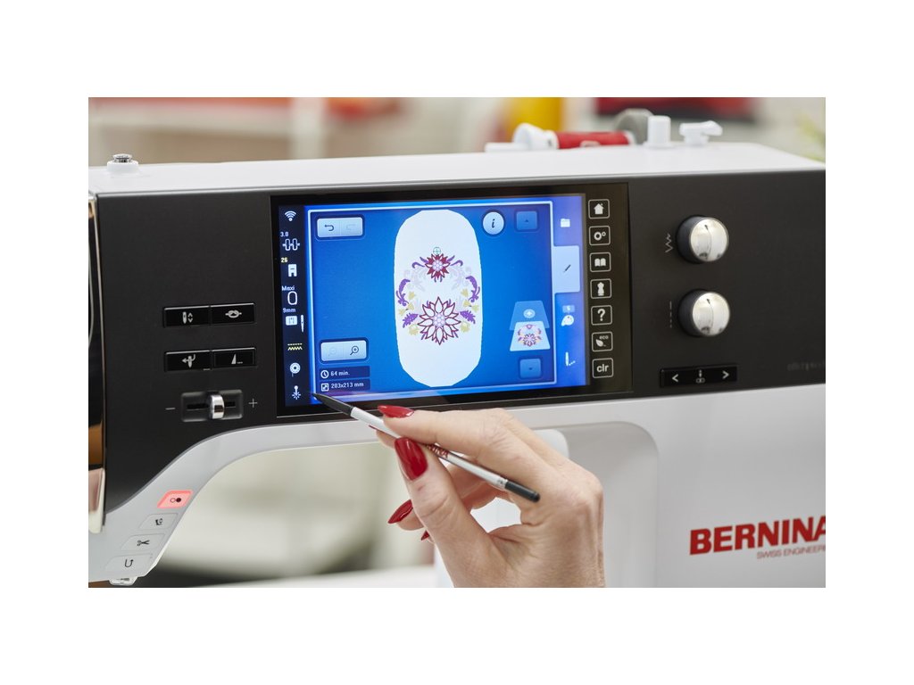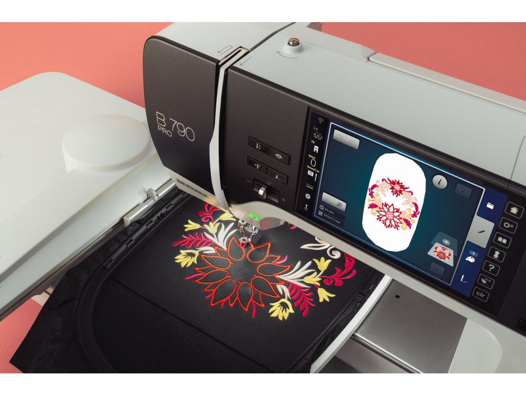 Komunikácia cez WiFi: B 790 PRO dokáže komunikovať s BERNINA Embroidery Software 9 bezdrôtovo. Teraz môžete preniesť návrhy výšiviek vytvorené alebo upravené v softvéri na PC do stroja alebo naopak. A vďaka novej aplikácii BERNINA Stitchout App je možné proces vyšívania jednoducho sledovať na vašom smartfóne. B 790 PRO sa pripojí k aplikácii, čo vám umožní sledovať stav vášho vyšívacieho stehu z ktorejkoľvek miestnosti vo vašom dome. Aplikácia vás upozorní na zmenu farby nite, pretrhnutie nite alebo keď je dizajn hotový. ·