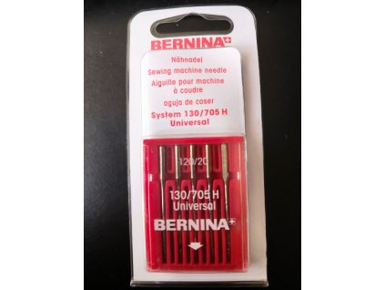 Bernina IHLA UNIVERSAL 130/705 H. Štandardná ihla na bežný materiál. Hrúbka 100/16. Balenie po 5 ks.