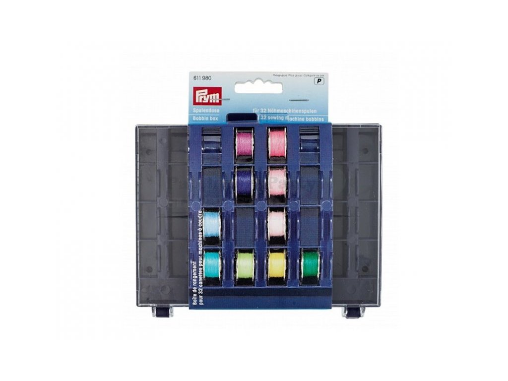 Box na cievky spodnej nite má 32 priečinkov, ktoré slúžia na úschovu cievok so spodnou niťou, ktorú práve vo vašom stroji nepoužívate.