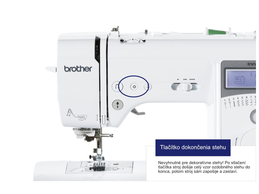 - Voľba automatického zapošitia na začiatku a konci šitia pomocou tlačidla - stroj môže sám vytvoriť zaisťovacie stehy, bez toho aby ste na to museli myslieť.
