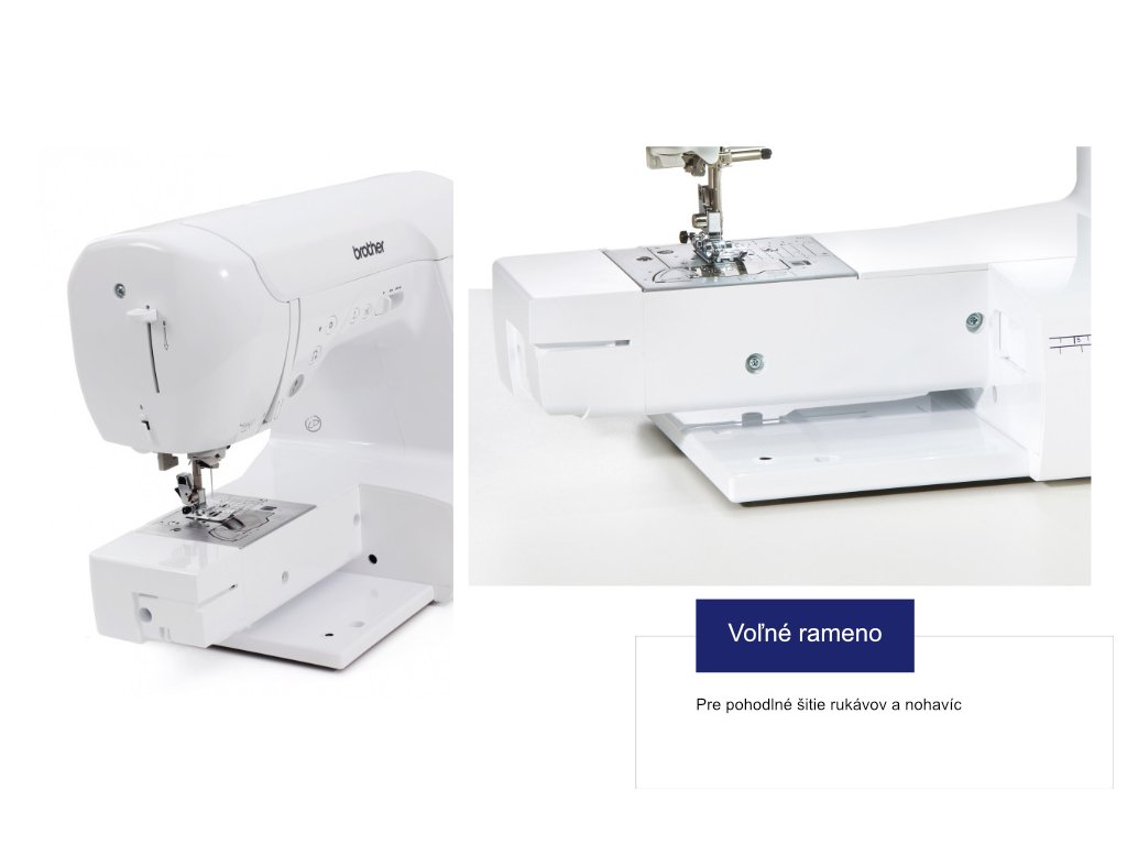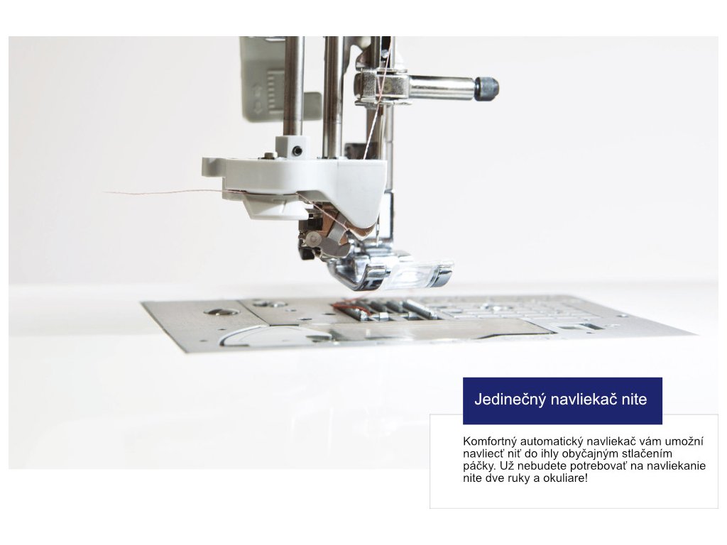 Horizontálny rotačný chapač s priehľadnou krytkou, 7-radovaný systém podávacích zúbkov a možnosť zasunutia podávača robia tento stroj ideálnym pre rôzne šijacie projekty. K dispozícii je tiež pamäť na 10 nastavení, kolenná páka a LED osvetlenie pracovnej plochy.