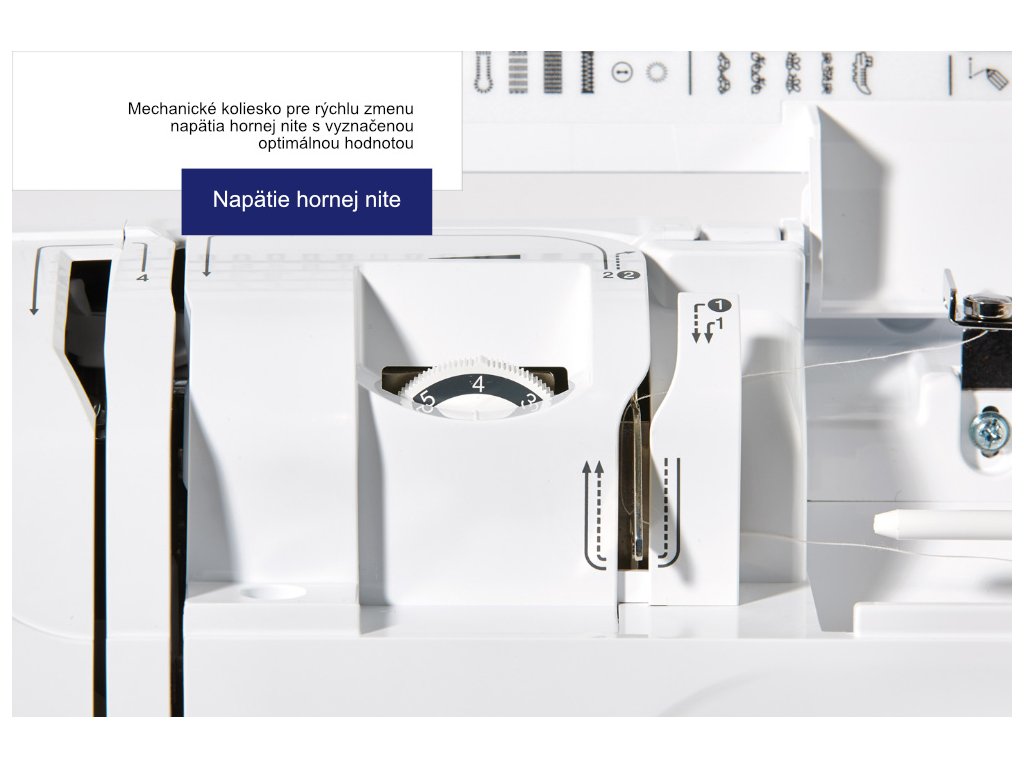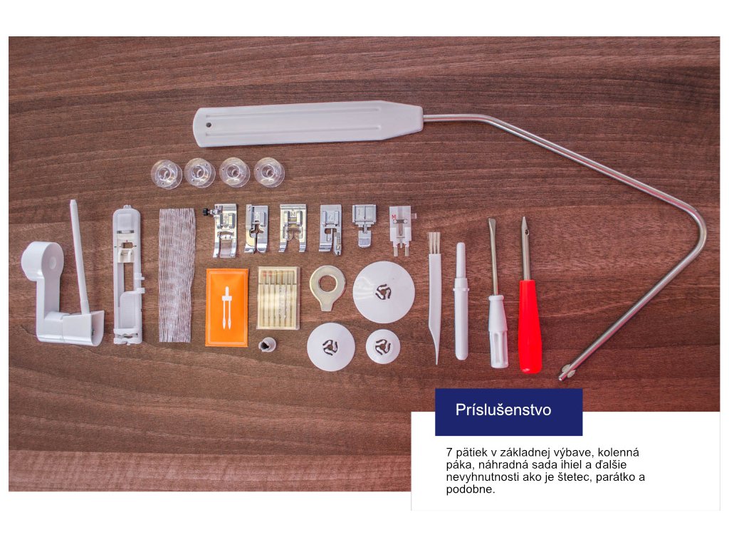 - Elektronická regulácia rýchlosti priamo na tele stroja (možnosť šitia bez pedála)