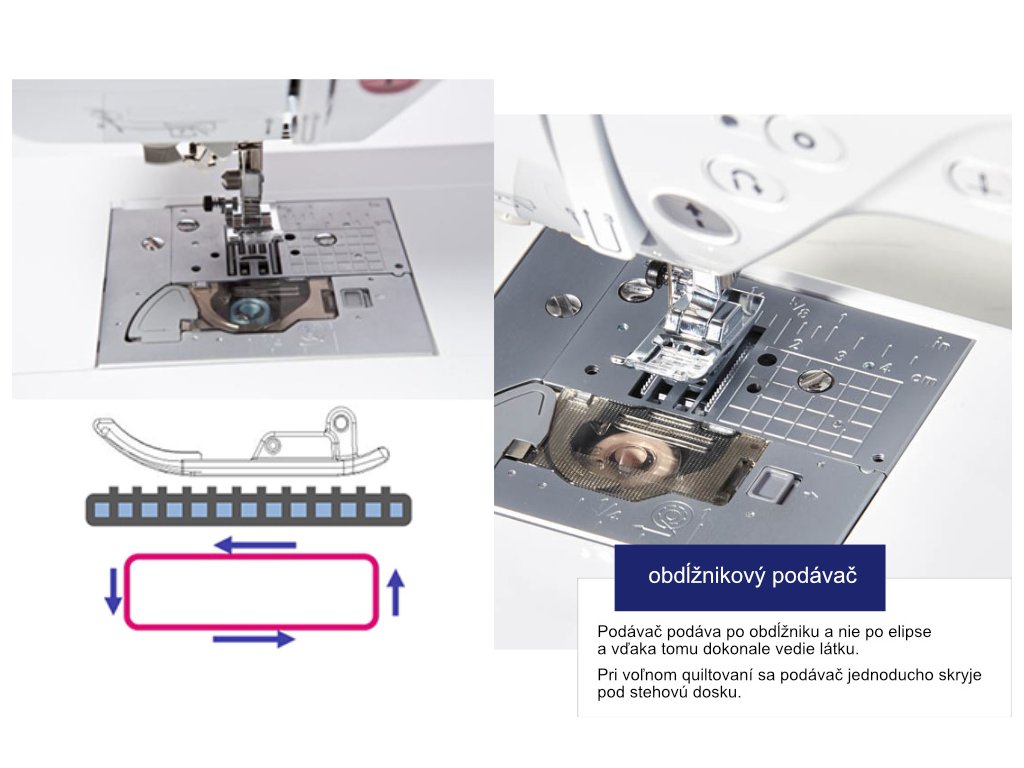 - Deaktivácia zúbkov podávača - vhodné na ručné šitie, vyšívanie a quiltovanie