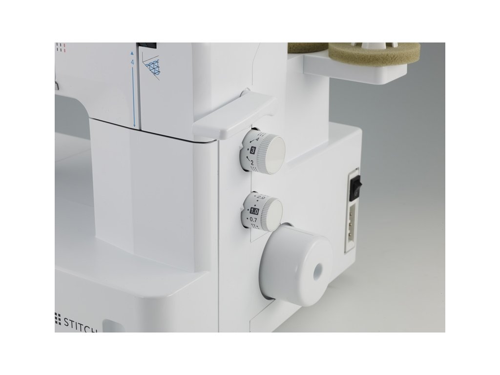 - Otočný ovládač pre dĺžku stehu, posuvný ovládač pre nastavenie diferenciálu