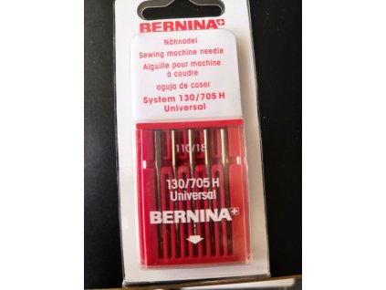 Bernina univerzálna ihla UNI hrúbky 110. Pre väčšinu látok, vrátane tričkoviny a syntetiky. Hrúbka 110/18. Balenie po 5 ks.