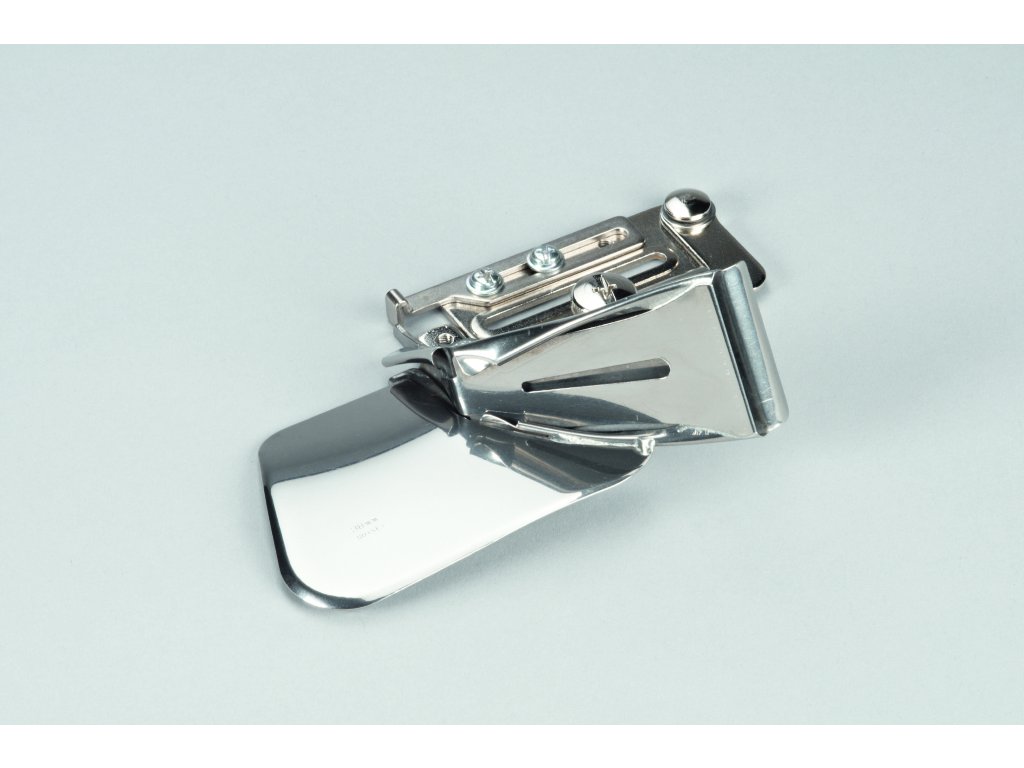 Nepreložený prúžok je vedený cez pripojený podávač, umiestnený presne na okraji tkaniny a bezpečne pridržiavaný na svojom mieste, kým nie je prišitý.