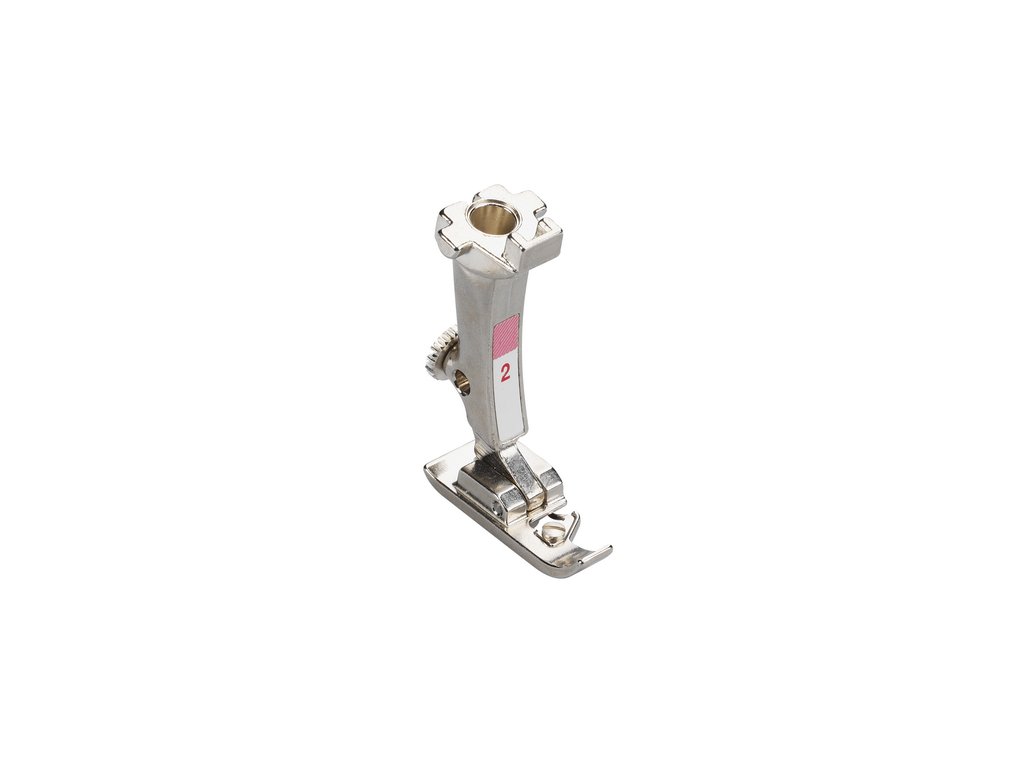 Overlocková pätka #2 je ideálna pre výrobu obšívaných švíkov a lemov. To sa veľmi dobre hodí pre začisťovacie jednoduché švy. Stehy sú vytvorené cez čap na vnútornej hrane pätky, čím sa stehom pridáva dodatočné množstvo nite navyše. To zabraňuje tkanine, aby sa sťahovala a vytvára sa plochý, elastický šev. Overlocková pätka sa dá použiť aj na šitie kvalitných lemov, driekových a obšívaných švíkov na pleteninách.