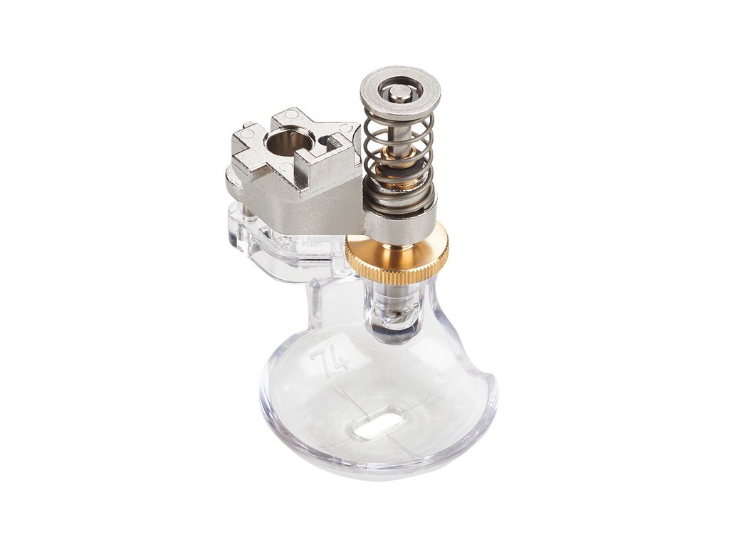 Pätka Bernina #74 má priesvitný tanierik s vyvýšenými okrajmi a v strede zameriavací kríž pre presné umiestnenie vpichu ihly či už pri quiltovaní, quiltovaní s robotom alebo pri vyšívaní. Regulačné koliesko umožňuje zdvih spodnej strany pätky vždy podľa hrúbky práve spracovávaného materiálu. Čím je sendvič alebo látka hrubšia, tým vyššie sa nastaví spodok pätky a výsledok je vždy dokonalý.