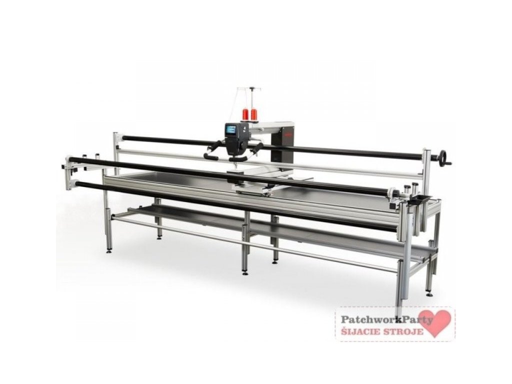 Nič lepšie na trhu s quiltovacími rámami neexistuje. Bernina PRO Classic dĺžky 360 cm, poslúži Vám na prešívanie quiltov max.šírky 285cm, čo bohate postačuje na tie najkrajšie prehozy či deky.