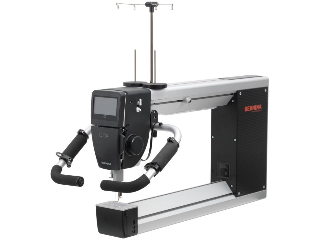 Tichý a silný DC motor a veľká výška medzi pätkou a stehovou doskou poskytuje dostatok miesta na spracovanie aj hrubých sendvičov. Funkcia hop-hop umožňuje vyskočiť na výstupky quiltovacej plochy bez zastavenia práce. Quiltovací stroj Bernina Q24 je kompatibilný so všetkými šijacími a quiltovacími pätkami Bernina.
