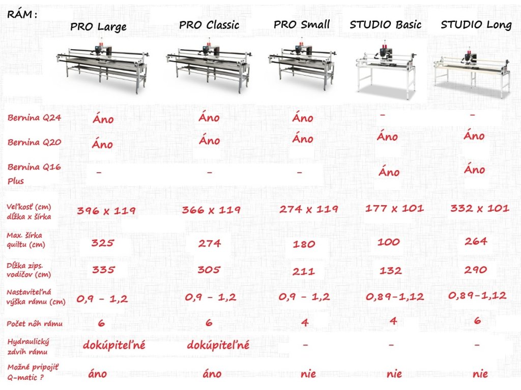 Quiltovací stroj nie je súčasť rámu a ak ho nemáte, je potrebné si ho zakúpiť sólo, alebo ako sadu rám+stroj.