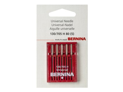 Bernina IHLA UNIVERSAL 130/705 H. Štandardná ihla na bežný materiál. Balenie po 5 ks: 2x hr.70, 2x hr.80, 1x hr.90.
