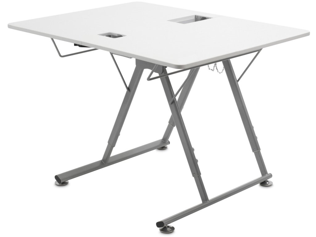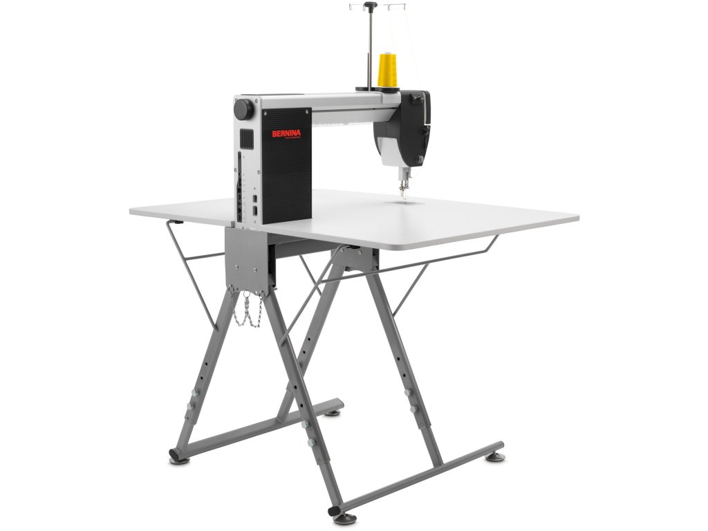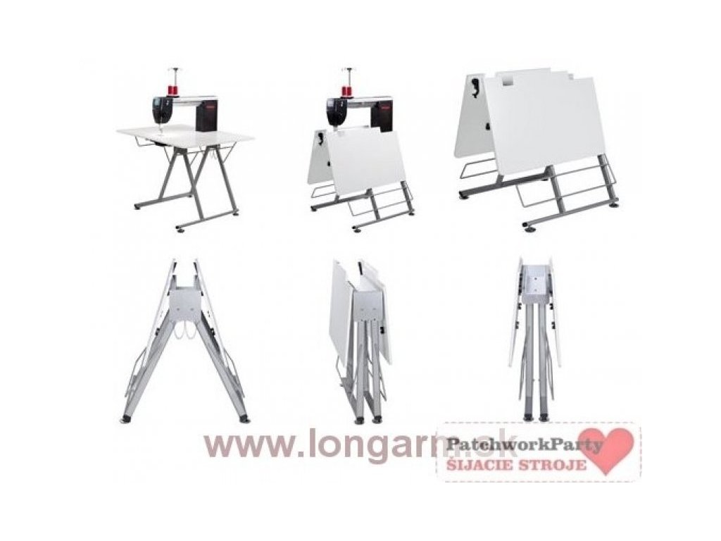 Skladací stôl je cenovo dostupné a sofistikované riešenie pre manipuláciu s rýchlosťou, hmotnosťou a výkonom Q 16 a Q 20. Nastavenie je rýchle a ľahké behom niekoľkých minút - nie je treba žiadne náradie. Látky ľahko kĺzajú po hladkom povrchu stola. Ak je priestor pre quiltovanie obmedzený, možno skladací stôl uskladniť jednoduchým a priestorovo úsporným spôsobom.