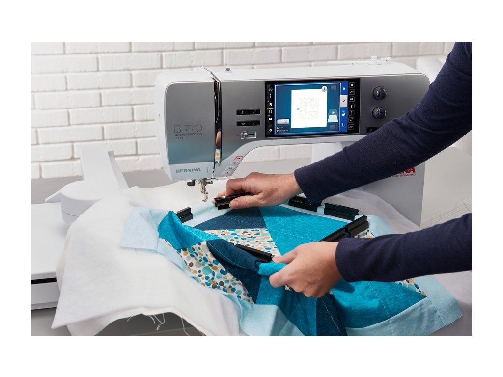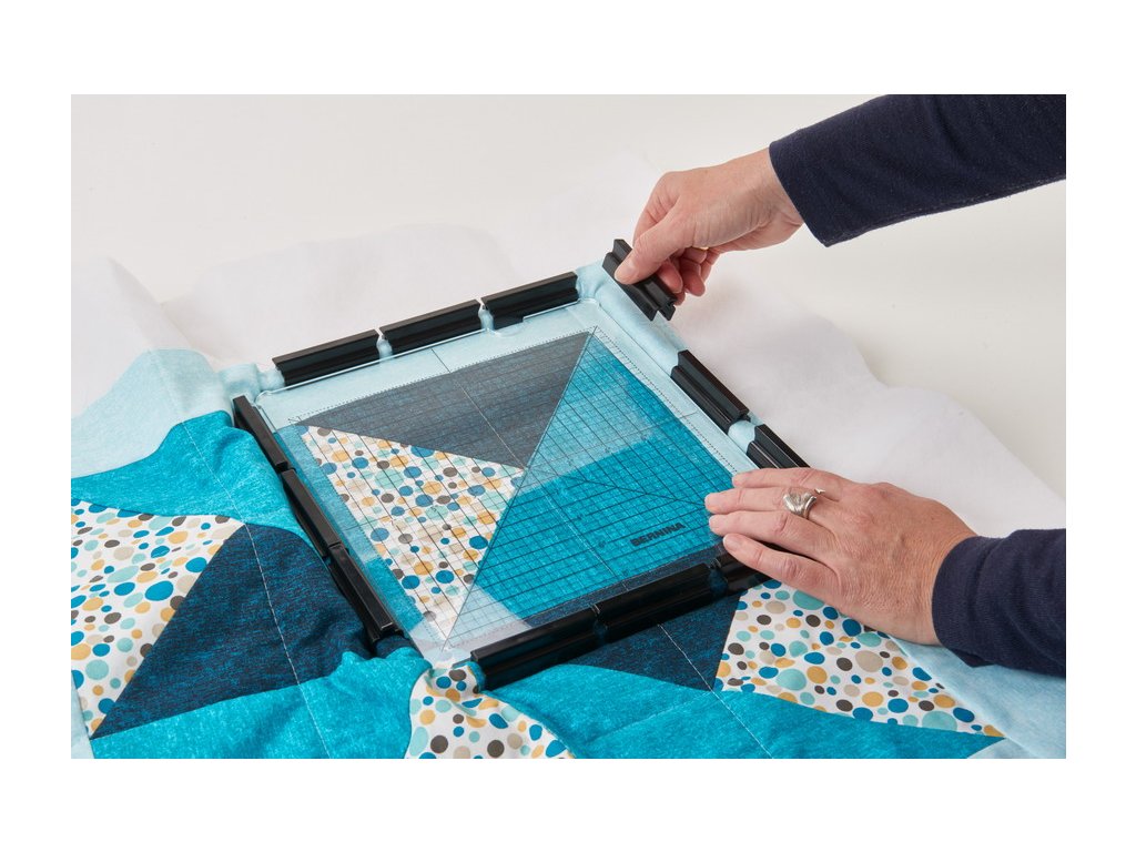 Vyšívací rám BERNINA na patchwork je ideálny vyšívací rám pre quilterov. Štvorcový tvar dokonale vyhovuje štvorcovým vzorom bežným pri quiltovaní. V porovnaní s oválnymi rámami to šetrí stabilizátor vyšívania aj látku jednoducho umiestnite a upnite projekt na quiltovanie do rámu pripevnením premiestniteľných svoriek. Hrubá akrylová šablóna Vám umožňuje vizualizovať presné umiestnenie a zároveň poskytuje správne napätie pri obručovaní. ide o perfektný doplnok na predvedenie toho, aké ľahké a presné môže byť prešívanie pomocou vyšívacieho modulu. Jednoduché uchytenie a umiestnenie. Jednoduché zarovnanie štvorcových vzorov. Ideálne pre projekty obručového quiltovania. Potrebné je menej stabilizátora a tkaniny.