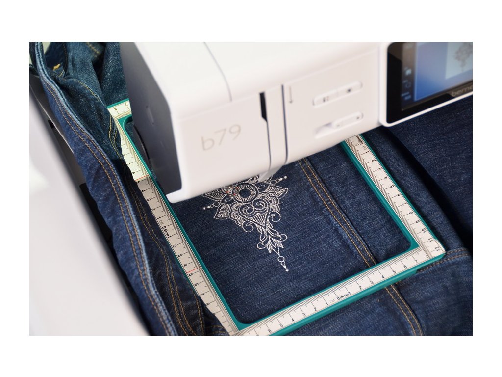 Zaklapávací rám Bernette SMALL sa dodáva s plochým magnetickým vrchom a kovovým spodným rámom. Spodný rám obsahuje nástavec stroja, ktorý Váš vyšívací stroj rozpozná. Jednoducho položte stabilizátor a látku na spodný rám a zaklapnite horný rám na miesto! Viacnásobné rámovanie je so Zaklapávacím rámom SMALL hračkou. Stačí zdvihnúť magnetický horný rám, posunúť látku a zacvaknúť rám späť na miesto. Ľahko dosiahnete bezchybné súvislé okraje a celoplošné výšivky na úpletoch, tkaninách a ďalších. Stehujte až po okraj látky tak, že zaistíte len dve alebo viac strán v ráme. Keďže stred rámu nie je rovnaký ako dizajnový stred, budete musieť k zaklapávaciemu magnetickému rámu pridať pravítka. Pre správne umiestnenie pravítok si tu stiahnite vyšívací súbor "Výšivkový kríž" vo veľkosti vyšívacieho rámu a potom postupujte podľa pokynov.